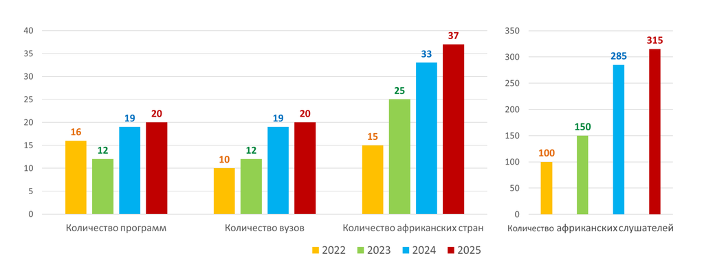 - Увеличение числа иностранных слушателей Летнего многопрофильного университета РАФУ в краткосрочной перспективе, увеличение числа иностранных обучающихся из стран Африки в российских вузах в среднесрочной перспективе;