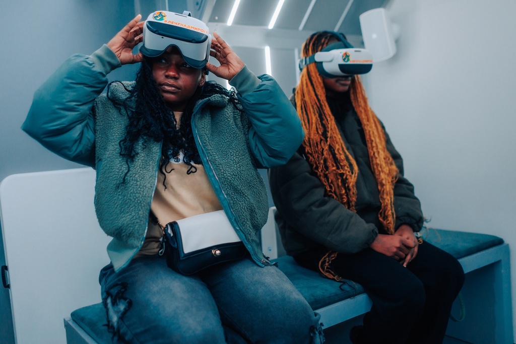 Отдельным событием дня стала экскурсия для иностранных студентов из Сенегала, ЦАР и Конго! Они погрузились в ключевые вехи российской истории, а также увидели красоту нашей природы в фильме «Лечу над миром. Чудеса природы России» с использованием VR-технологий.